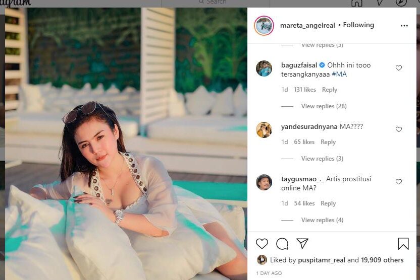 Netizen pun beramai-ramai menyerbu akun Instagram @mareta_angelreal milik Mareta Angel. Bahkan, akun centang biru @baguzfaisal memberikan komentar seperti ini, “Oh ini tooo tersangkanya #MA,” tulisnya.