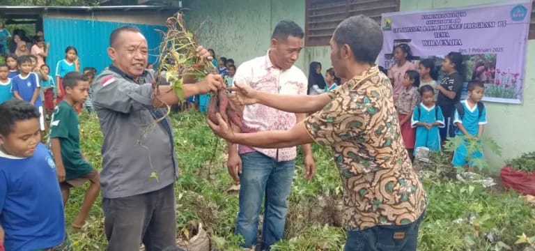 RUTENG,FAJARNTT.COM – Komunitas Belajar SDN Reo Dua, Kecamatan Reok, Kabupaten Manggarai, menggelar panen raya ubi ungu sebagai bagian dari Program Penguatan Profil Pelajar Pancasila (P5) bertema Wira Usaha, Sabtu (1/2/2025).